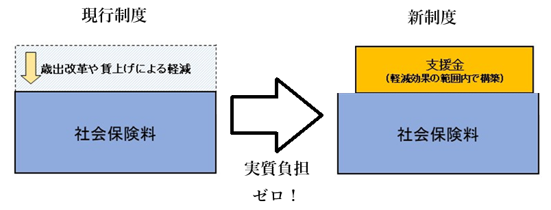 上で社会保険料として集めるぞい!と書きましたが、その社会保険料を少し下げて、下げた分だけまた増やすから、実質ゼロだぞ!っていう言い分の様子。